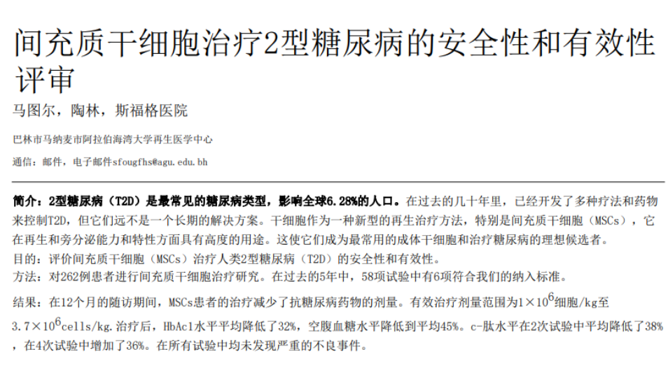 此外,間充質干細胞對于糖尿病心肌損害、糖尿病足、糖尿病視網膜病變、糖尿病腎病等并發癥,同樣在臨床研究中表現出了積極的效果。