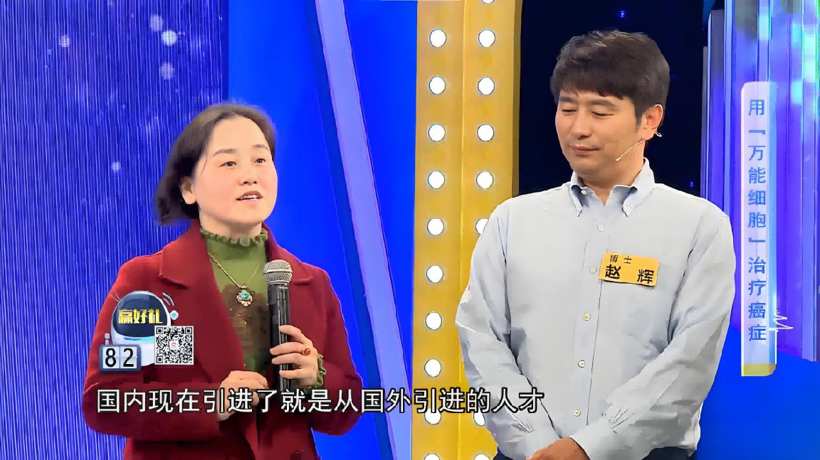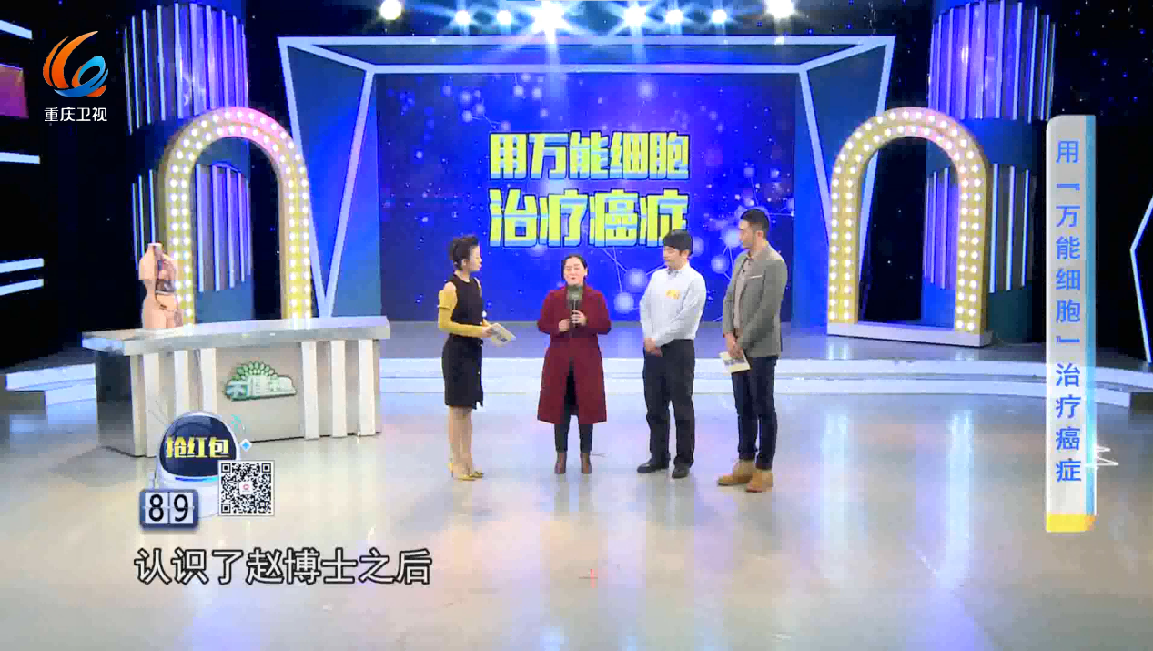 (圖為重慶電視臺《不健不散》健康欄目專訪現場,源創基因董事長趙輝博士詢問腫瘤患者鄭女士使用細胞后身體狀況)