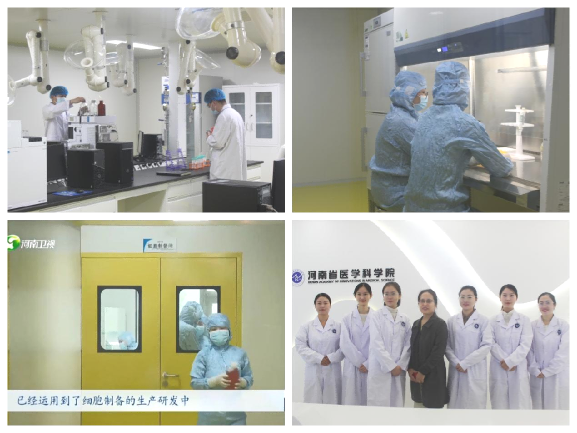 (圖一為細胞數據室;圖二為細胞實驗室;圖三為細胞制備間;圖四為河南省醫學科學院細胞與免疫治療CDMO平臺工作人員合影)