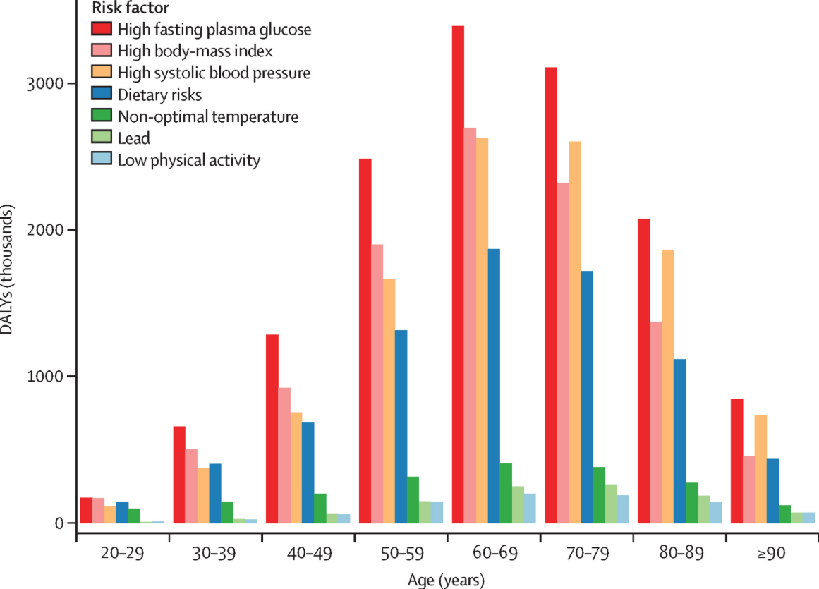 該研究進(jìn)一步明確了導(dǎo)致慢性腎病健康損失的主要危險(xiǎn)因素。前五位分別是:空腹血糖升高(貢獻(xiàn)31.9%)、收縮壓升高(24.5%)、體重指數(shù)升高(23.5%)、不良飲食習(xí)慣(17.6%)以及非適宜氣溫(4.4%)。這些因素共同加劇了因慢性腎病導(dǎo)致的傷殘調(diào)整壽命年負(fù)擔(dān)。