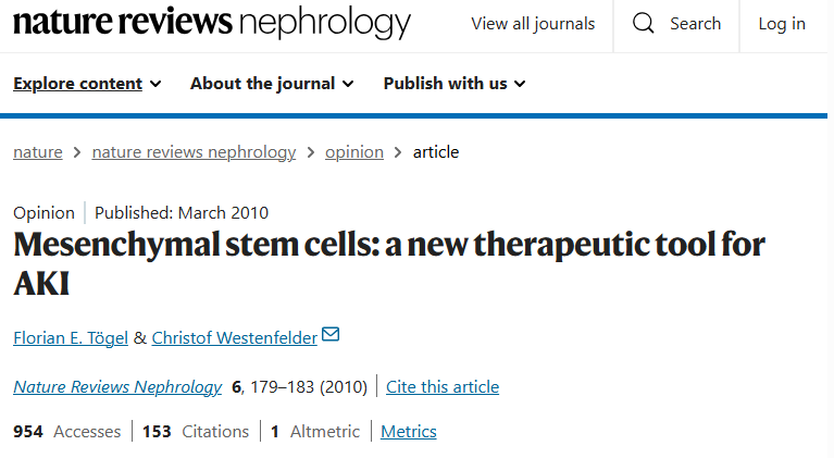 3、T?gel, F., & Westenfelder, C. (2012). Mesenchymal stem cells: a new therapeutic tool for AKI. Nature Reviews Nephrology, 8(7), 379-382.